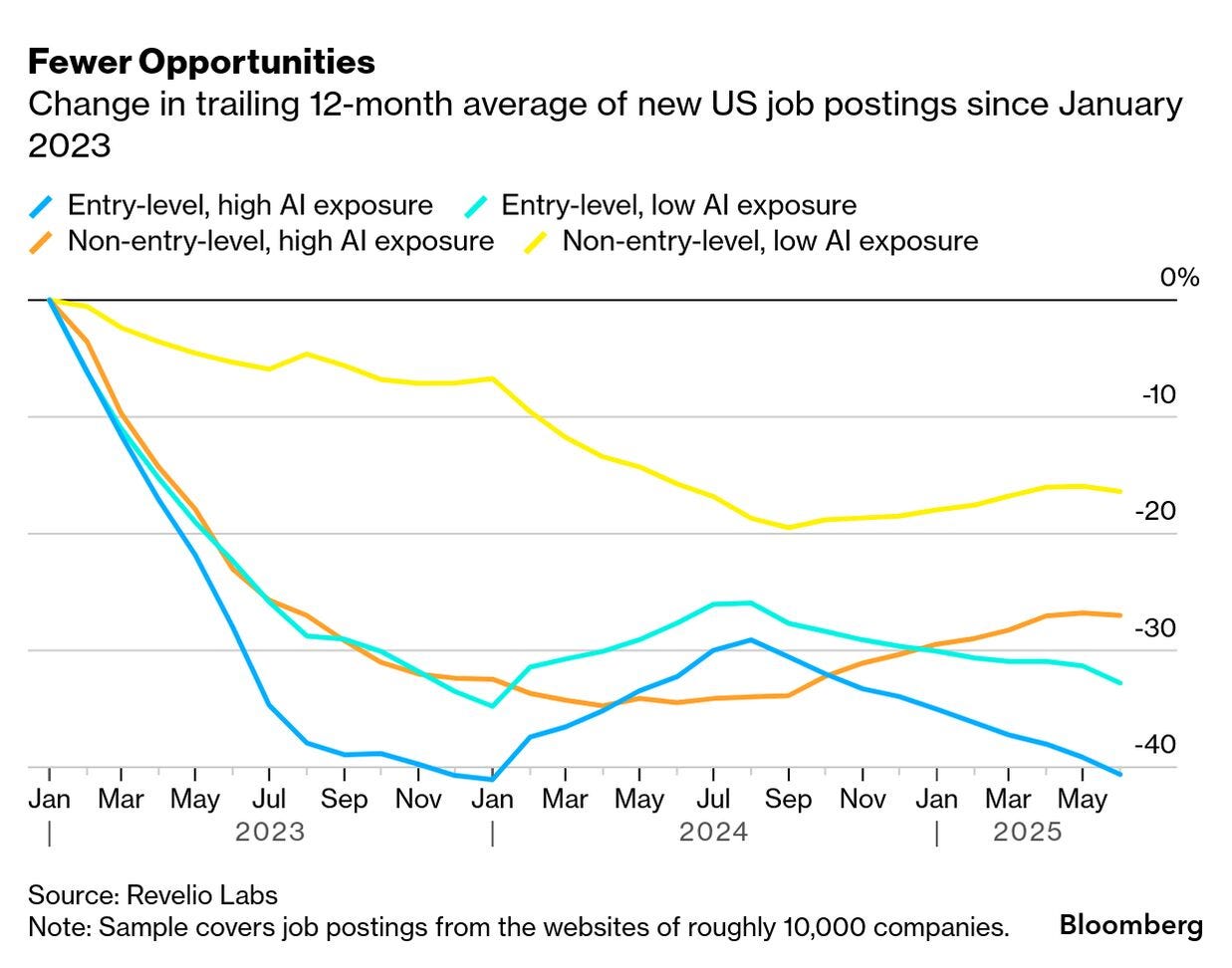 In a tightening labor market, entry-level U.S. college graduates in AI-exposed fields face a structural vulnerability at the firm level (a dynamic that aggregate economic arguments often overlook).